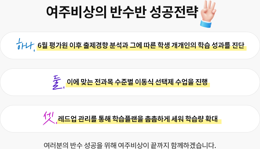 따라서 여주비상은 타 학원과 다르게 반수반을 운영합니다.