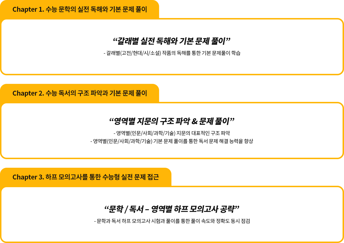 독서 지문의 구조 분석을 통하여 수능 국어의 기본을 완성합니다.
